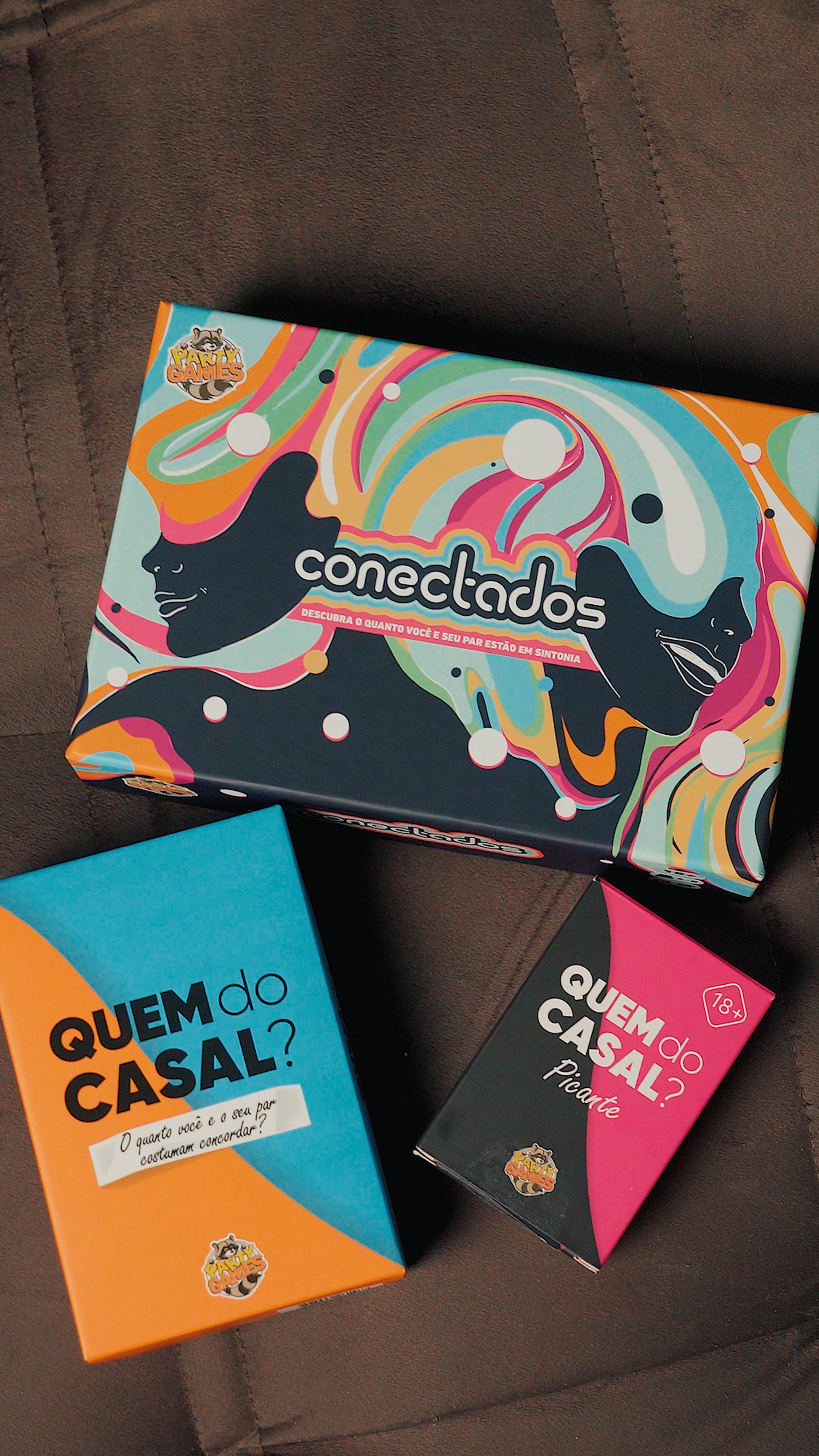 - "Conectados" é um jogo de tabuleiro super divertido, perfeito para casais que adoram um desafio. Mostre o quanto você conhece seu parceiro em um jogo cheio de perguntas intrigantes e reveladoras.