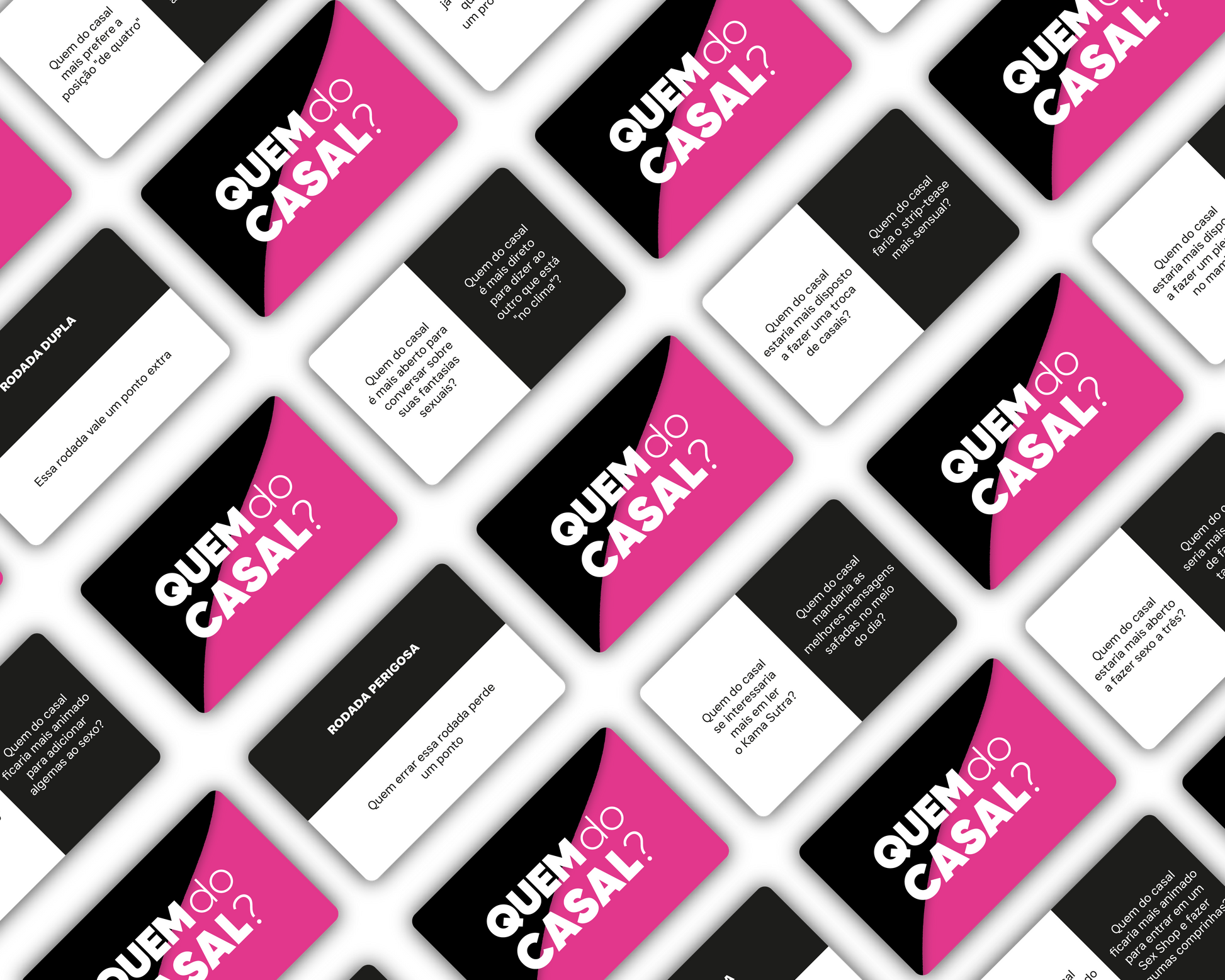 - Jogo perfeito para grupos de amigos com casais. Forme uma dupla com seu parceiro e deem a mesma resposta para perguntas como "Quem do casal acreditou no papai noel até mais tarde?" para pontuar e vencer o jogo.