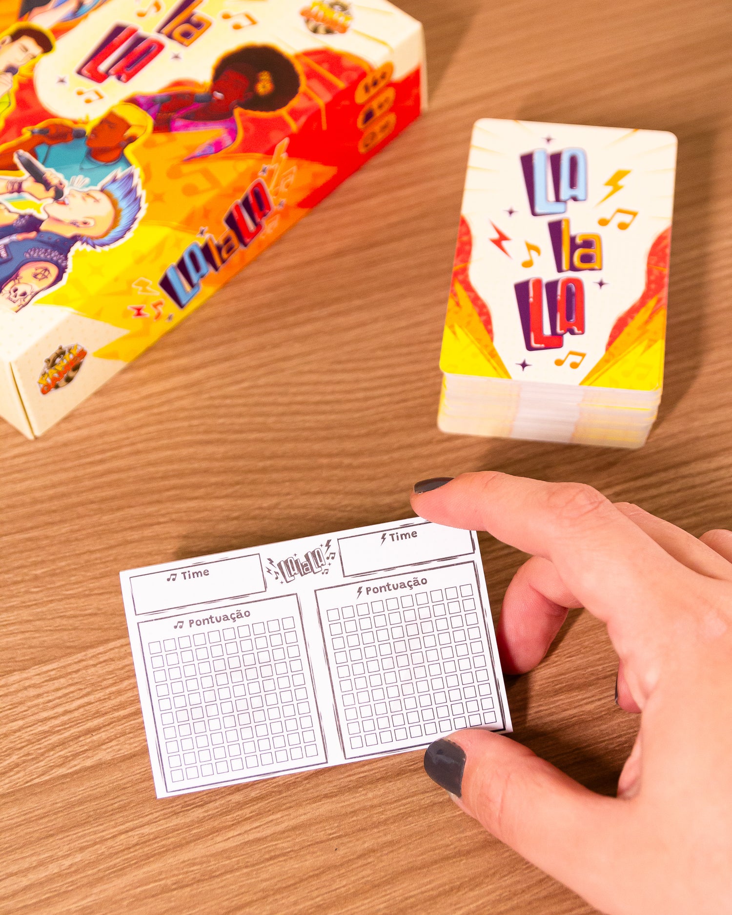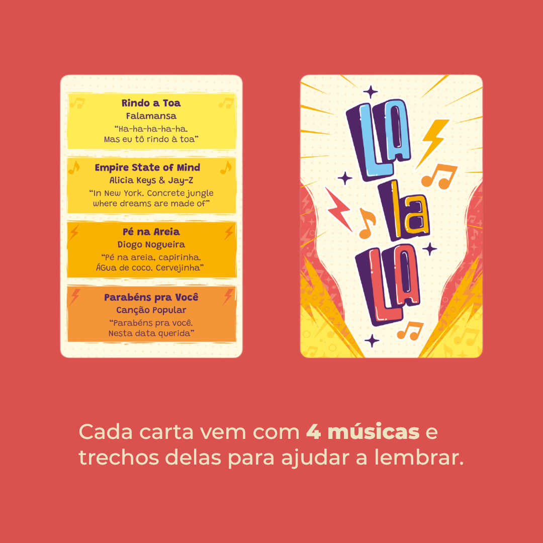 Leve, compacto e perfeito para levar a qualquer encontro, LALALA se adapta a qualquer ambiente: festas, reuniões de família ou aquela noite descontraída entre amigos. Com regras simples e dinâmicas rápidas, o jogo reúne pessoas de todas as idades e gostos musicais em torno de algo que todo mundo adora: música.