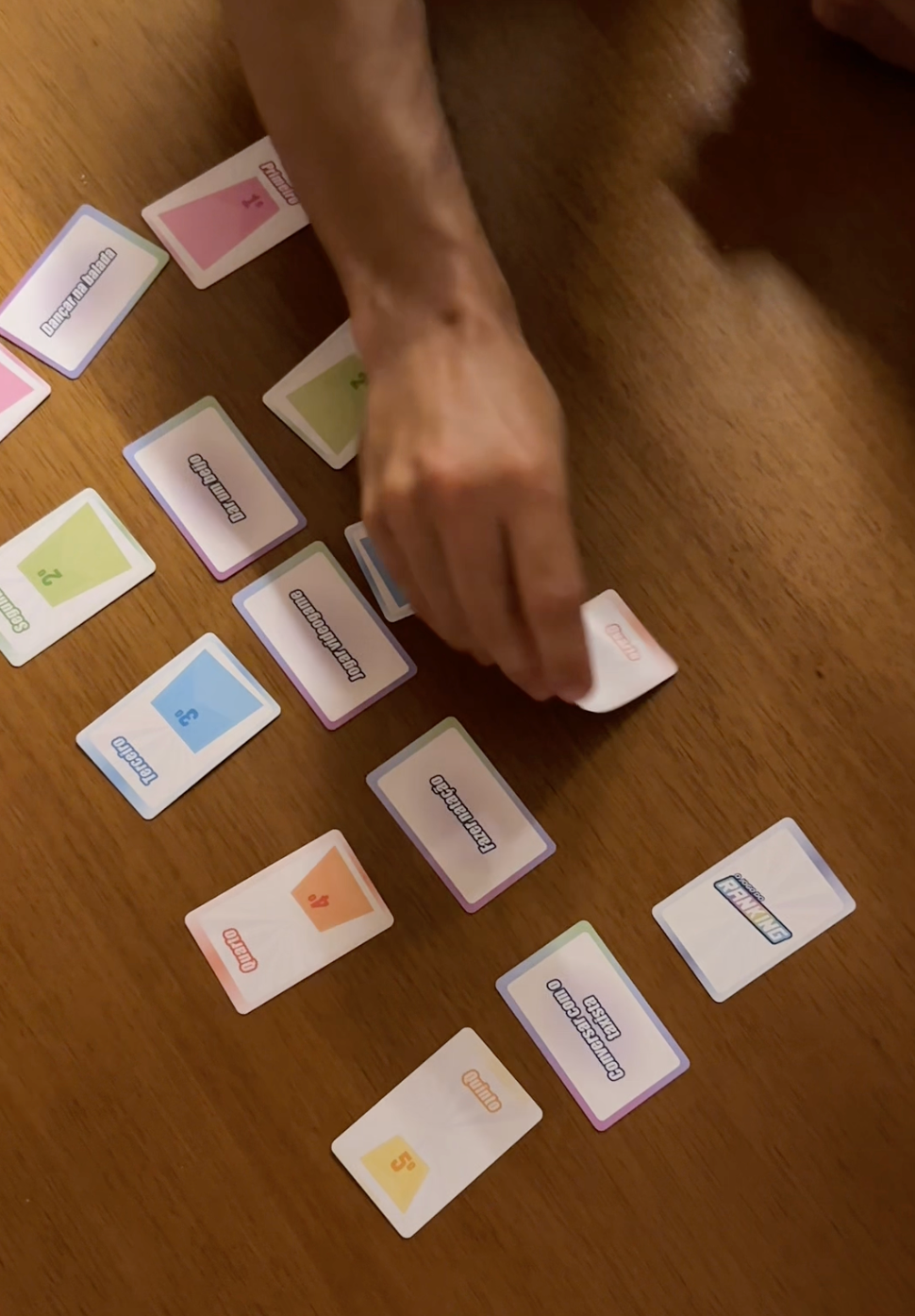 Em cada rodada, um jogador vira o Ranqueador e recebe cinco cartas com temas do dia a dia — tipo café, comida japonesa, passar cotonete no ouvido, ter uma fofoca quente pra contar ou parcelar no cartão.